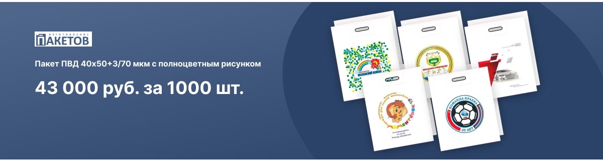 Закажите 10000 пакетов ПВД размером 40x50 см с полной цветной печатью всего за 43 000 рублей, и мы гарантируем, что продукция будет изготовлена в кратчайшие сроки. Кроме того, доставка по всей территории Москвы (в пределах МКАД) — абсолютно бесплатно.